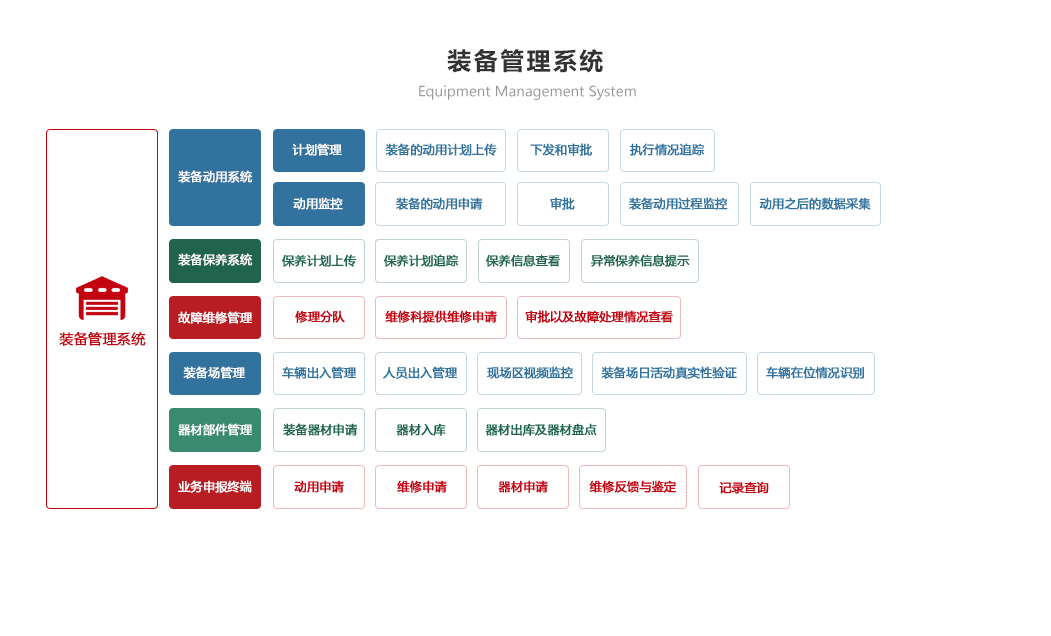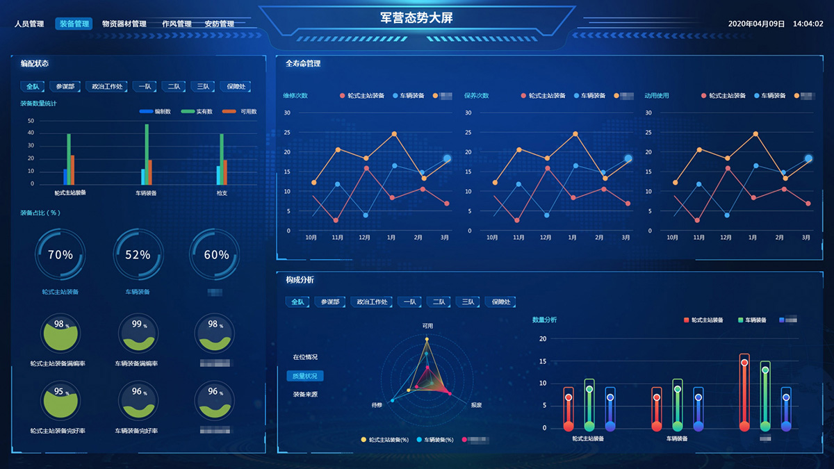 綜合保障系統依托物聯網、RFID識別和傳感技術,著眼作戰(zhàn)精準保障、戰(zhàn)備常態(tài)保障和官兵生活保障,對戰(zhàn)備物資、裝備器材、營房物資和被裝物資等的全生命周期的電子化管理,對官兵的健康實時監(jiān)護。包含財務管理、軍需油運、武器裝備、衛勤管理、營房管理模塊。確保部隊出動,車輛給養油料跟得上,裝備維護情況實時掌握,營房管理工作平時與戰(zhàn)備同步推進。